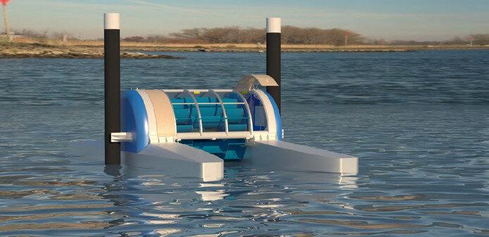 En dus wordt het een 'ouderwetse' molen, want die heeft geen invloed op de watersnelheid. Een wiek op een drijvende installatie, die vastzit aan twee palen, zoals een woonboot. Zodat het rad mee kan zakken en stijgen met de waterstand. ,,De stroomsnelheid van oppervlaktewater is altijd nagenoeg gelijk’’, zegt de directeur. ,,Voor ons is dit dan ook het ei van Columbus.’’